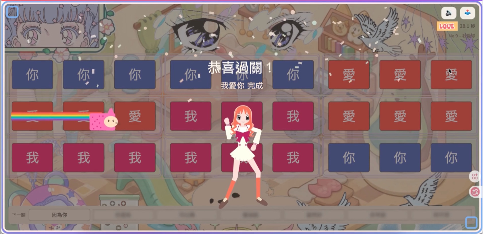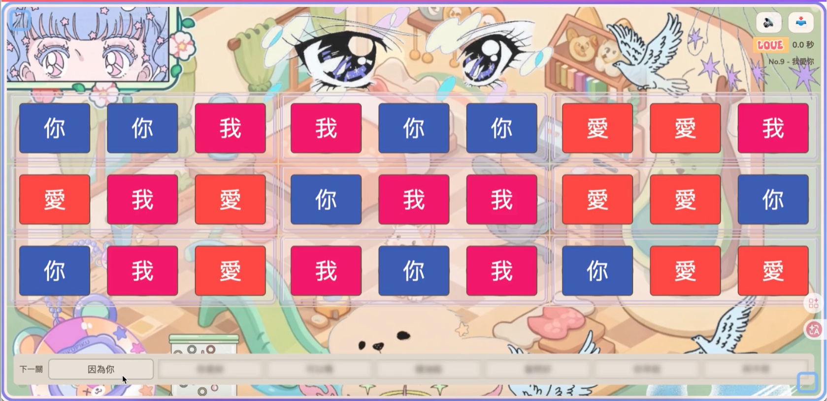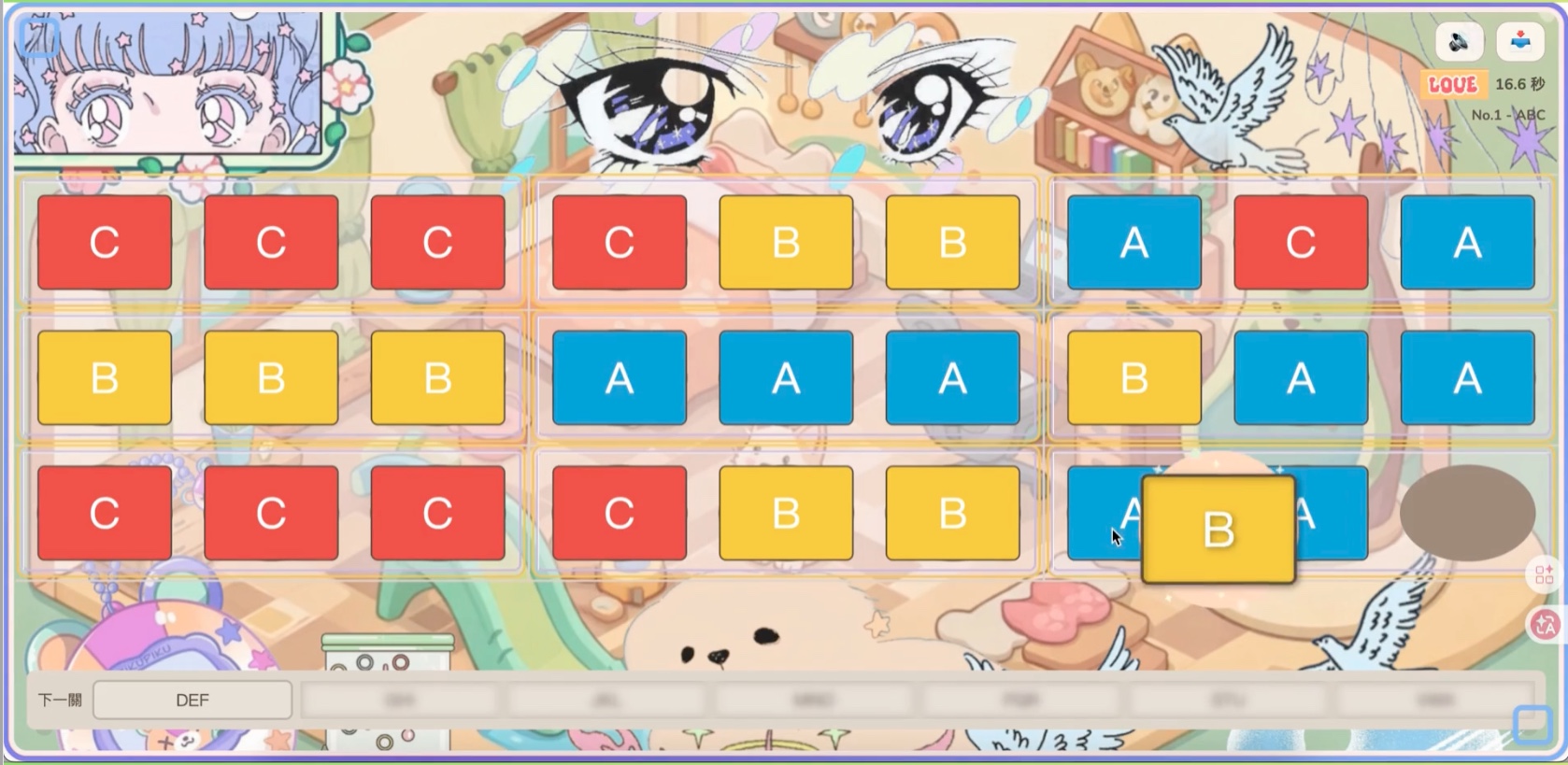 It’s a simple 9-grid puzzle where you organize cute patterns until each cell becomes neat and unified. No timers, no pressure — just soft colors, gentle sound, lovely visuals, and a calm atmosphere.